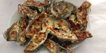Riquísimos ostiones típicos, gratinados con queso manchego