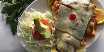 El camarón preparado con cebolla, morrón y su queso fundido que le da un buen sabor